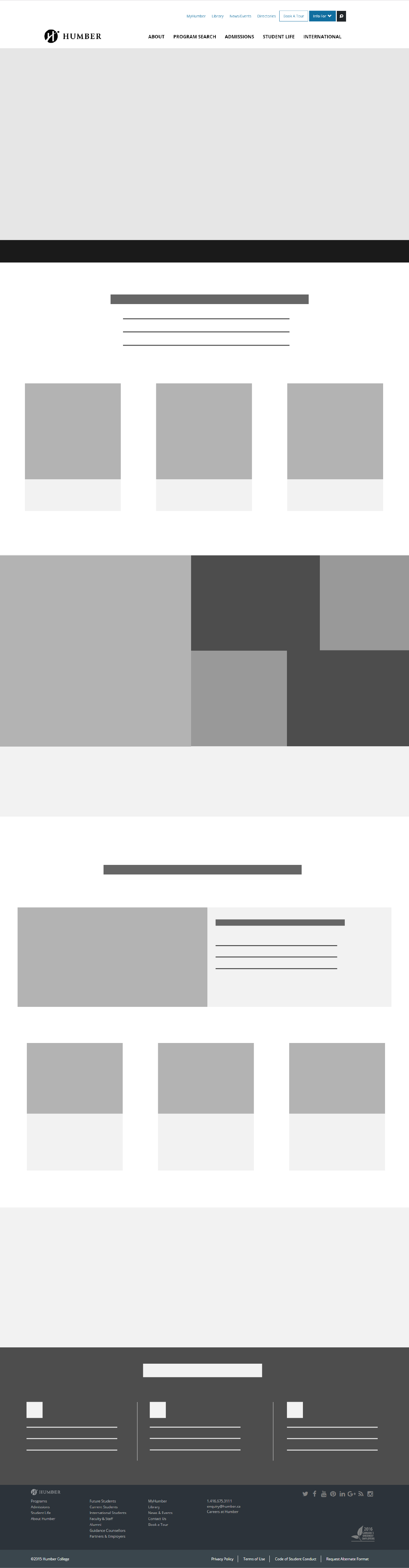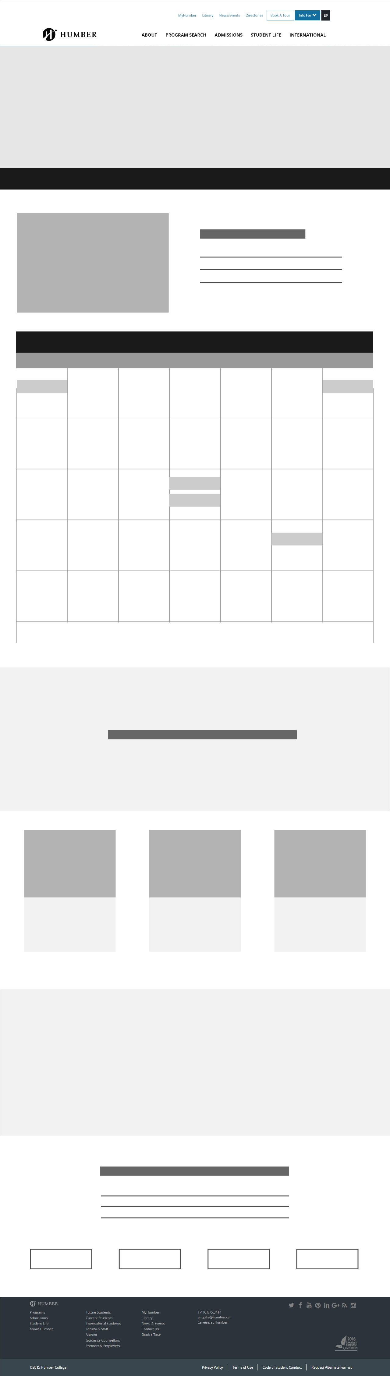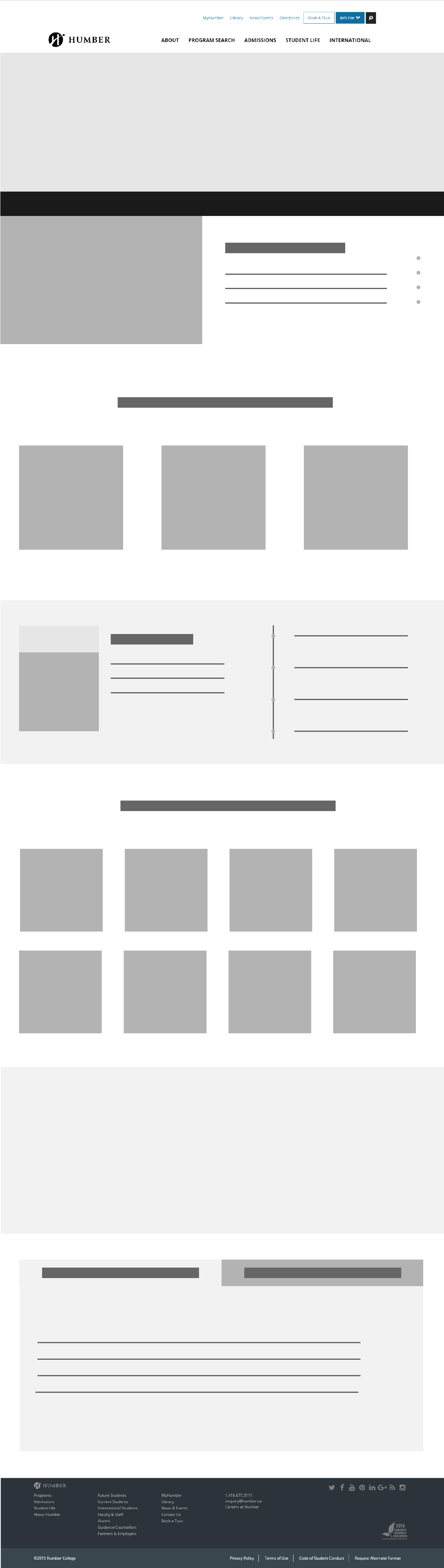 Naturally, userflow was a challenge. Each user had to find the information they needed easily. The site also had to present the content effectively, while still abiding by the Humber Web Guidelines