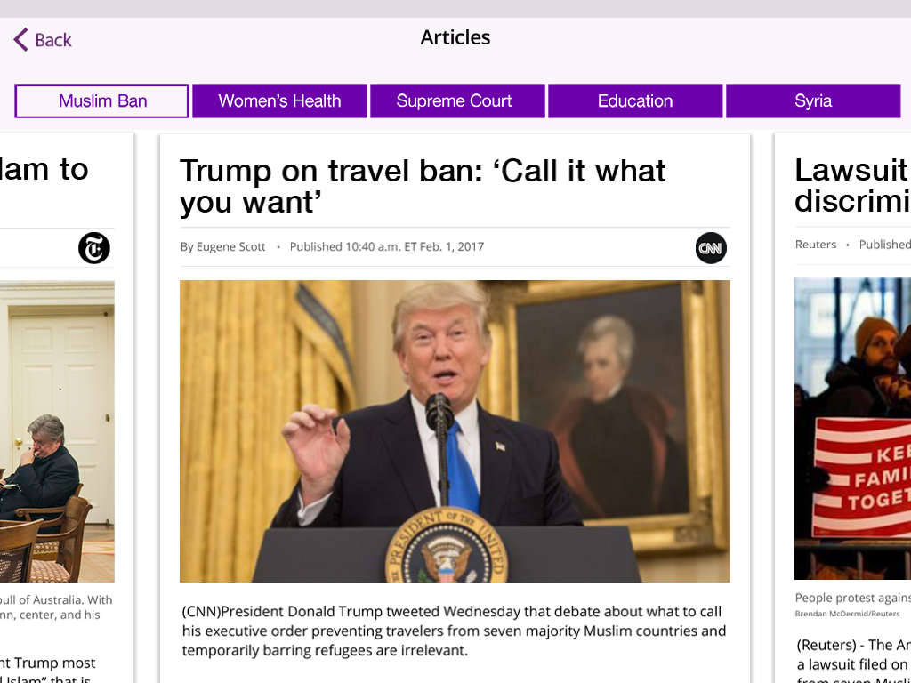 We chose to focus our app for U.S. audiences and those interested in U.S. politics and news. We are seeing a left/right divide in the U.S. growing during the time leading up to the election and after Donald Trump became the President of the United States. For this reason, the Democratic symbol of the Donkey and the Republican symbol of the Elephant are used at each end of the spectrum to demonstrate the overall bias of the publication and its readership for each story.