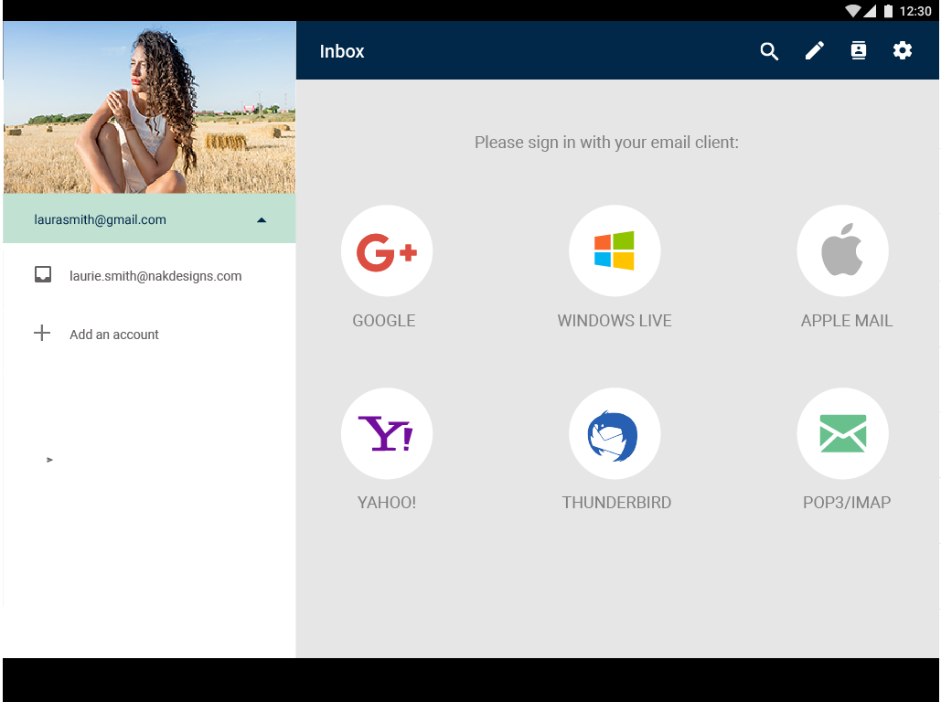 Our design was formed with the concepts of easy accessability. The inbox shows a sidebar, which gives easy access to all folders and accounts.