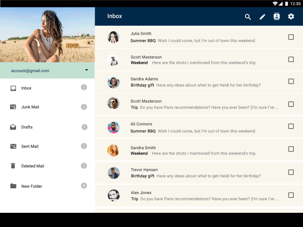 The goal of this project is to make the experience of reading and composing email on tablet, more efficient and comfortable.